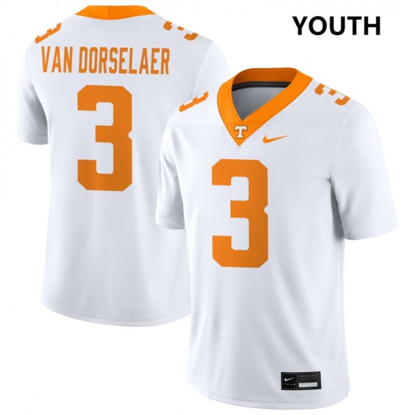 • Jack Van Dorselaer TN Volunteers Youth College Football #3 Official Jersey - White