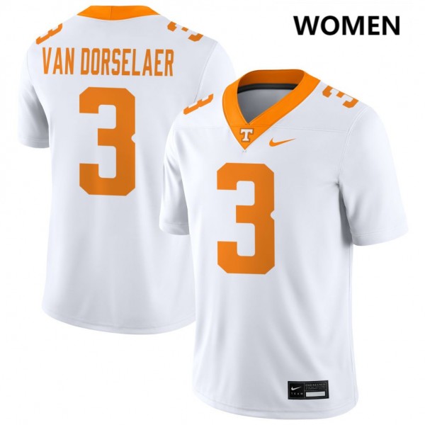 • Jack Van Dorselaer UT Vols College Football Embroidery #3 Women's Jerseys - White